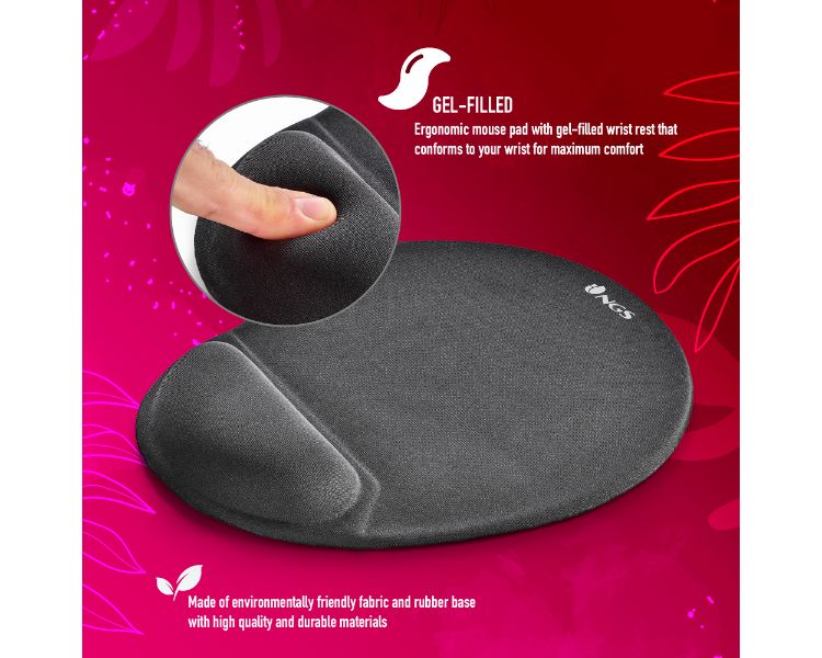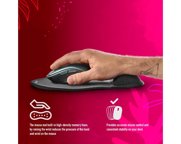 Almohadilla de ratón ergonómica rellena de gel en la zona de apoyo de la muñeca para un máximo confort.