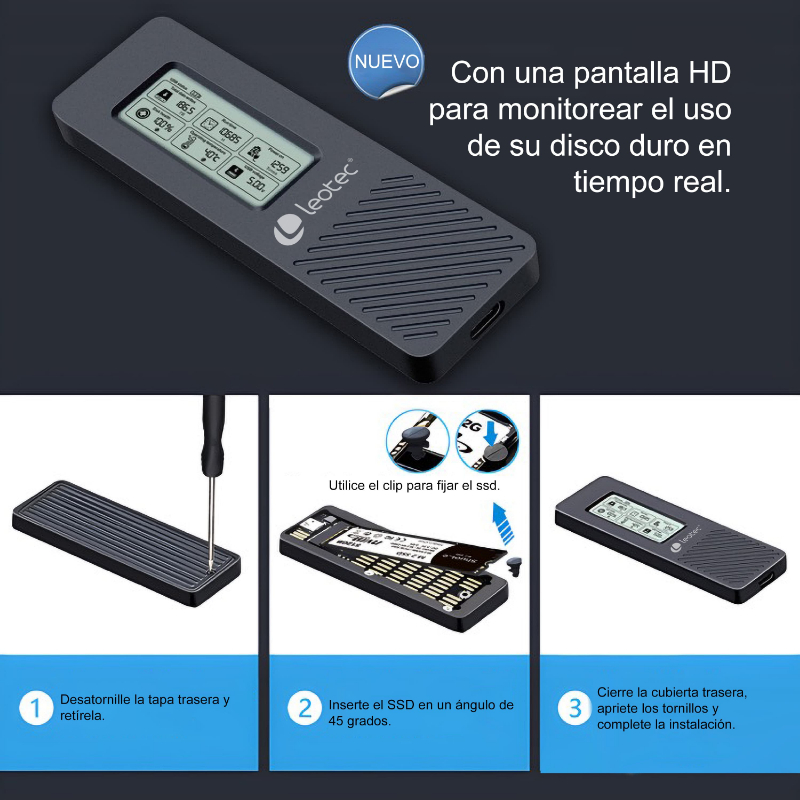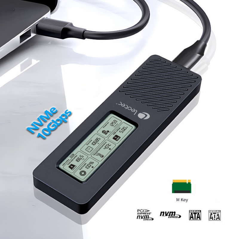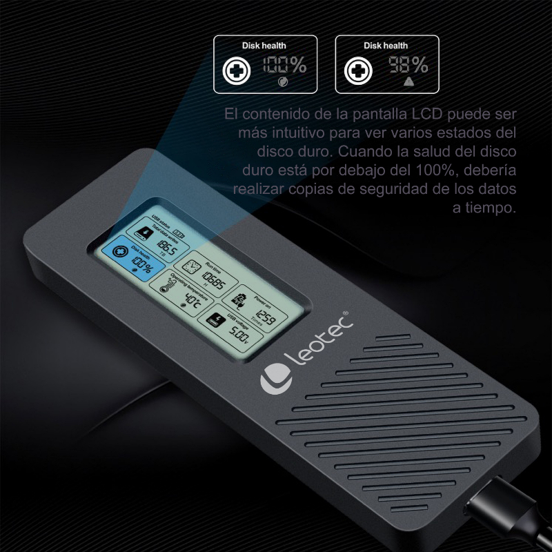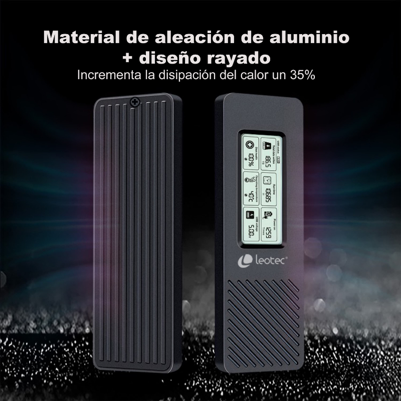 CAJA EXTERNA SSD M.2 NVMe CON PANTALLA LCD NEGRO LEOTEC