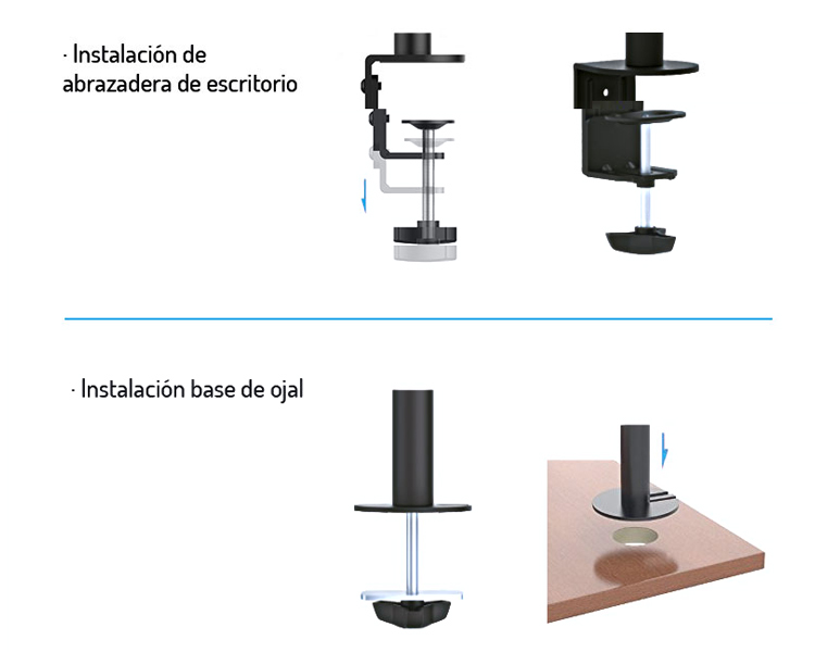 Soporte de mesa orientable para 2 pantallas (entre 13" y 32") y hasta un máximo de 8 kg de peso.