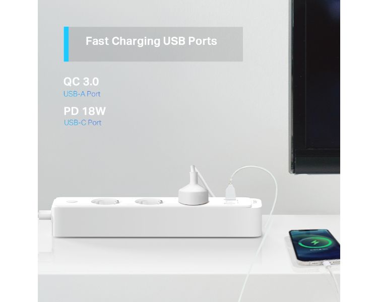 3 ENCHUFES INTELIGENTES/ CONTROL INDIVIDUAL/ 2xUSB3.0/ 1xUSB-C PD HASTA 18W